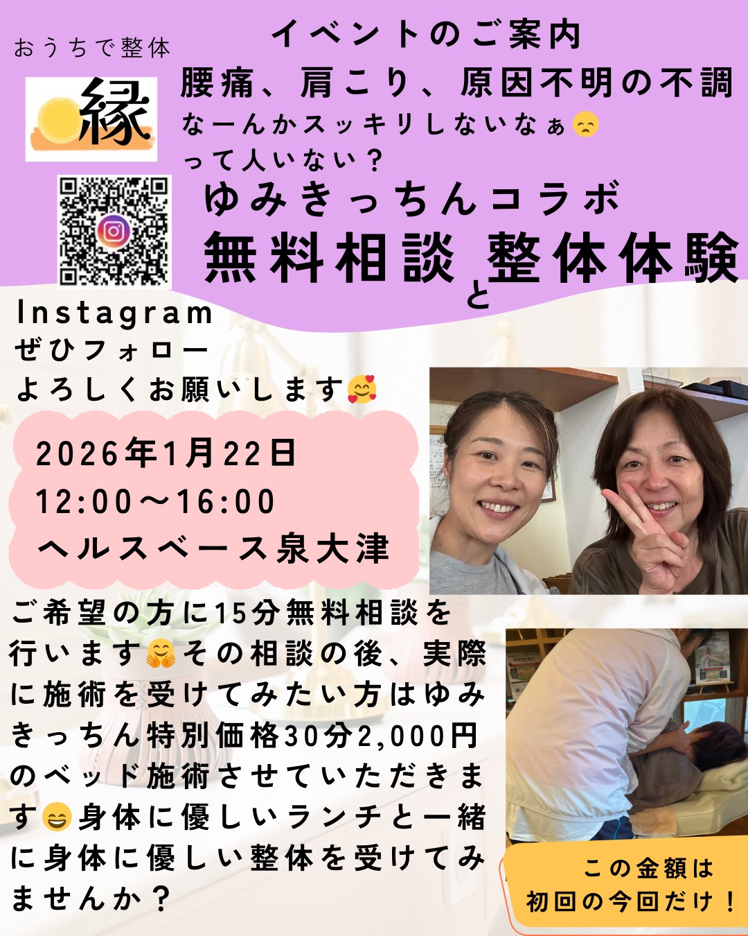 #無料相談 と #整体体験 を行います💆‍♀️💆‍♂️